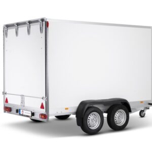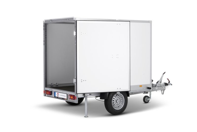 Kofferanhänger STPK O2 13-25-15.1.P15.1 Hecktür, P-Box gebremst, Plywood mit 1 x großer Hecktür und 2 x Abstellstütze